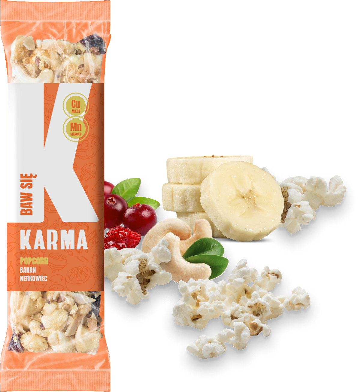 Baton bananowy z nerkowcem i popcornem.