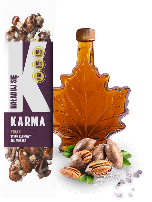 Baton migdałowy z orzechami pekan, syropem klonowym i solą morską.